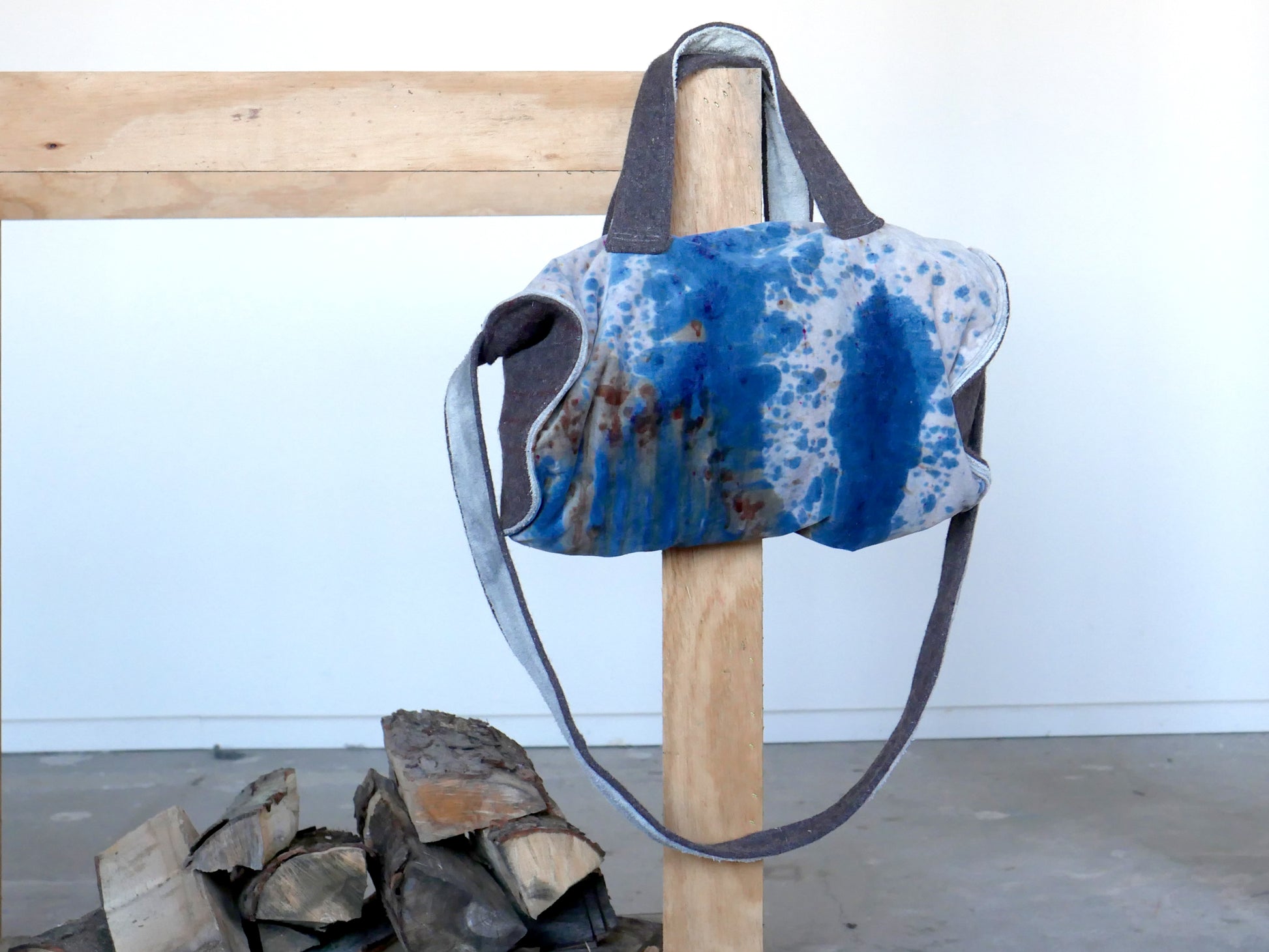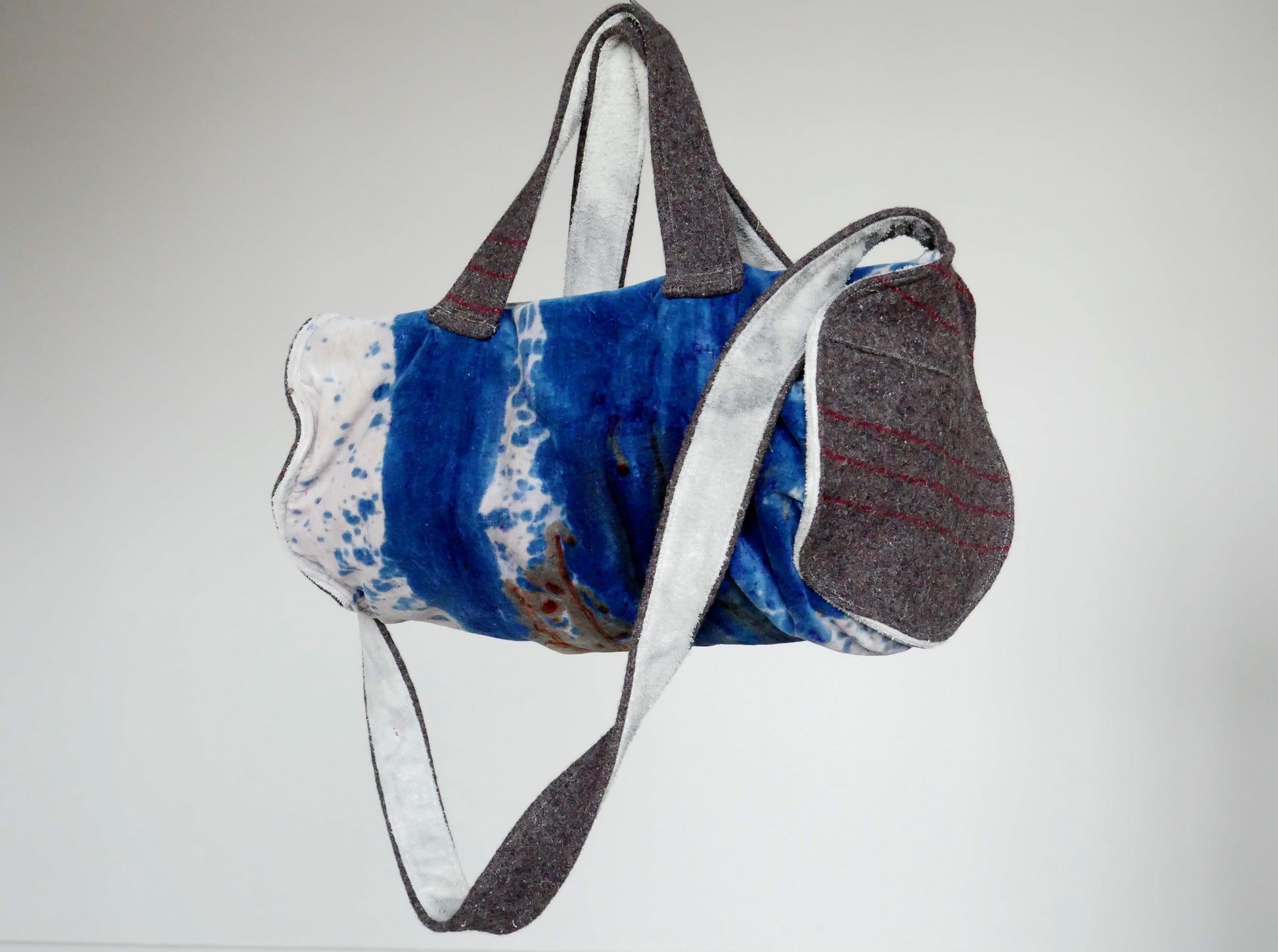 - Fully lined with vintage towel naturally dyed with hibiscus and iron