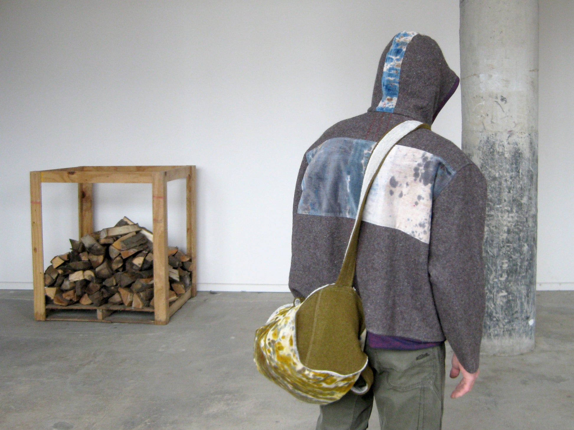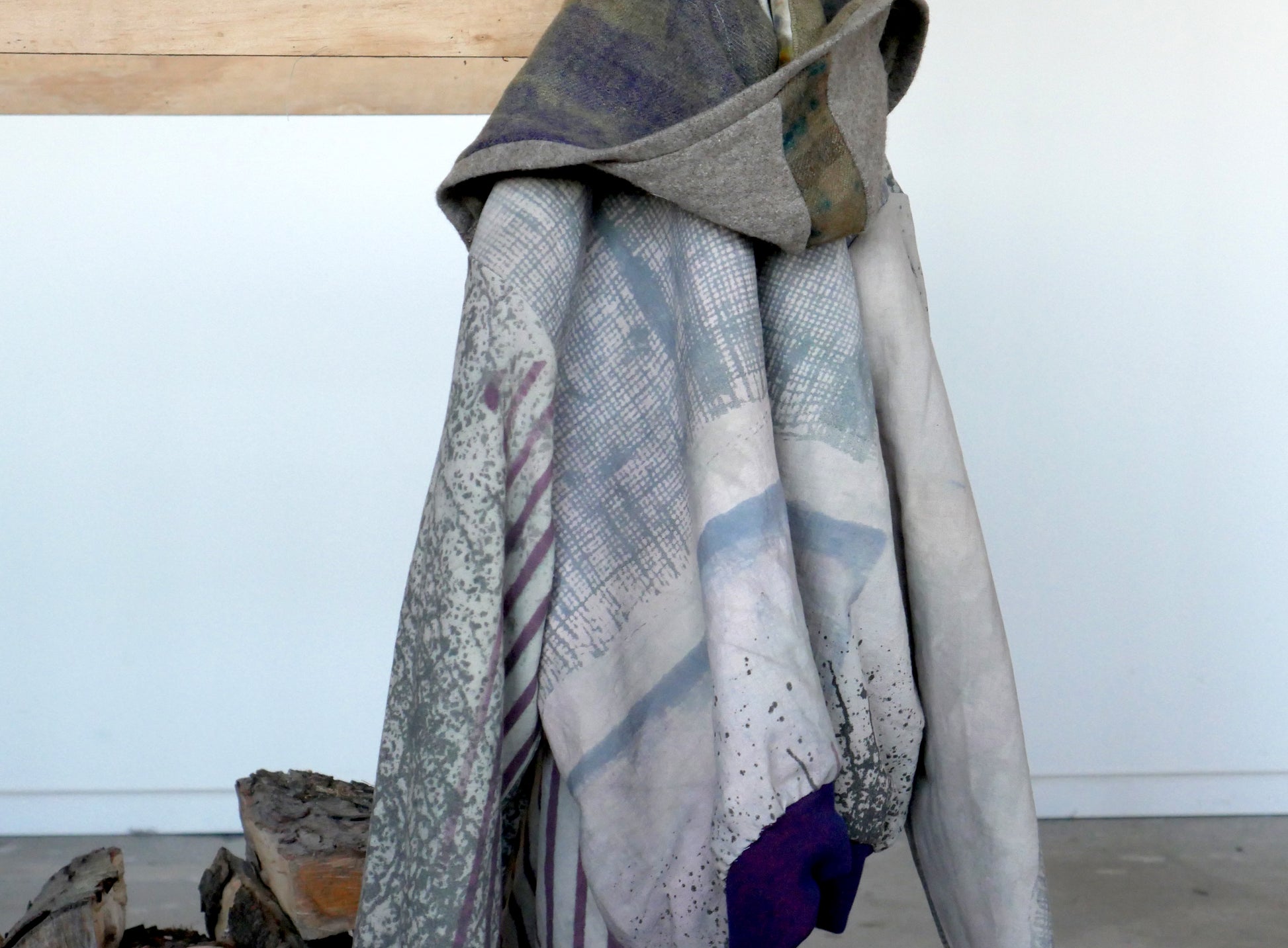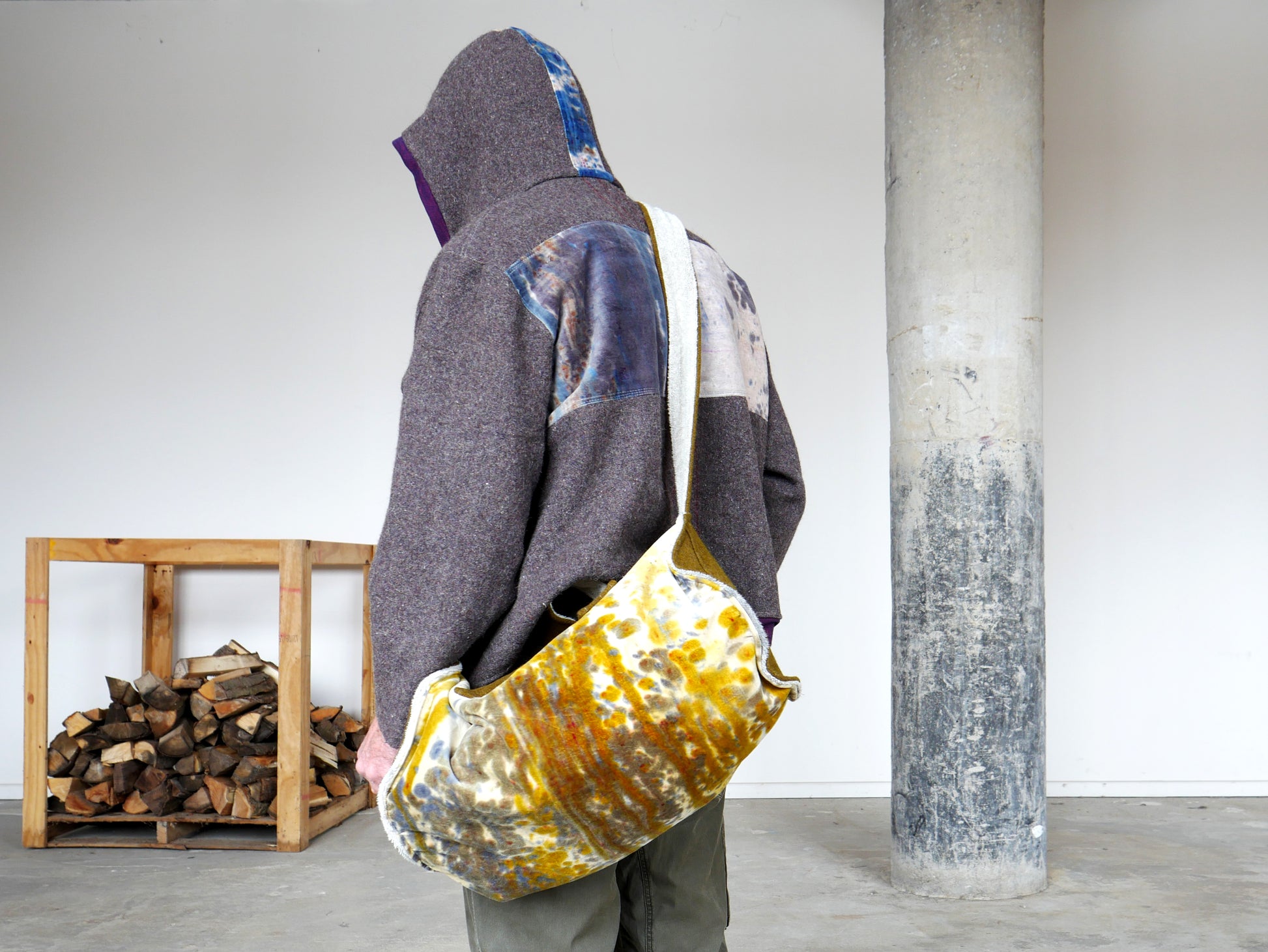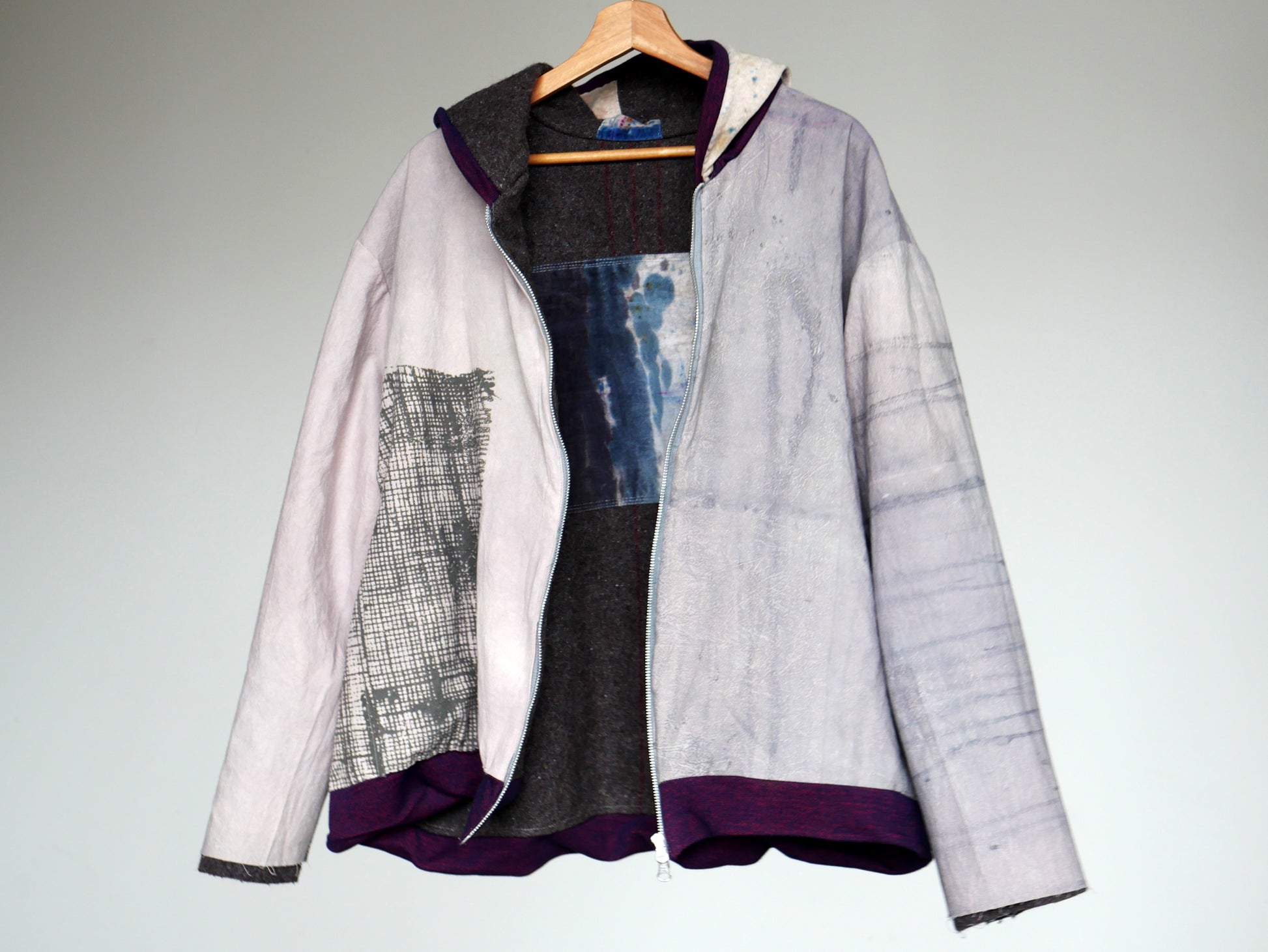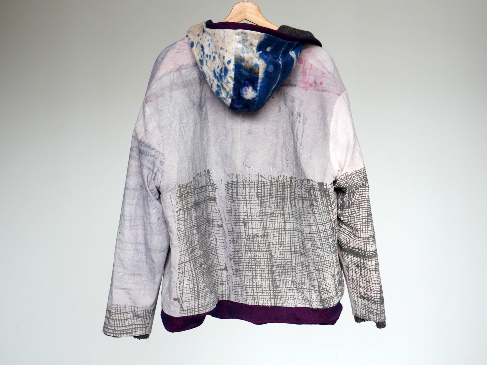 - Cotton velvet panel on hood and back mono-printed with fiber reactive dye dyed with hibiscus and iron